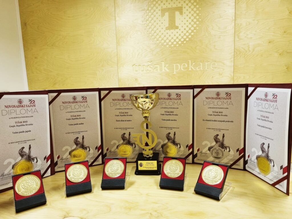 Na ocjenjivanju kvalitete proizvoda u Novom Sadu, u sklopu najvećeg poljoprivrednog sajmu u regiji tvrtka Tušak d.o.o. osvojila je nagrade za visoku kvalitetu voćnih prerađevina. Dobili su maksimalan broj bodova za nadjeve od maline, jagode, borovnice, marelice i smokve što je rezultiralo sa 5 velikih zlatnih medalja i peharom Novosadskog sajma za kvalitetu. Iako Lika nije tradicionalno voćarska regija, ovo je dokaz da naši proizvođači imaju znanja za proizvodnju visokokvalitetnih prerađevina.