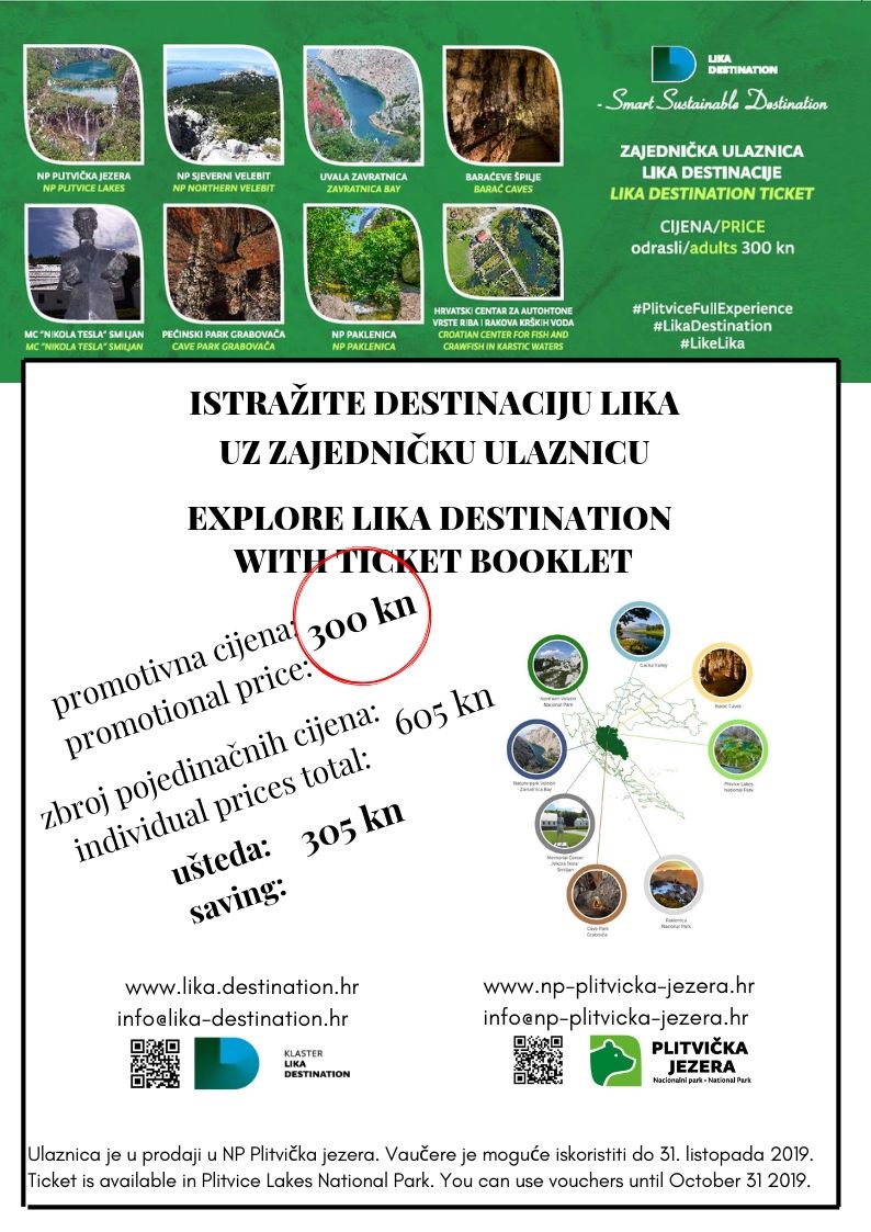 Motivirani uspjehom od prošle godine, Klaster Lika Destination i zaštićena prirodna područja u destinaciji Lika formirali su zajedničku ulaznicu destinacije Lika s ciljem poticanja duljeg zadržavanja turista u destinaciji te brendiranja destinacije Lika kao destinacije zaštićenih prirodnih područja.