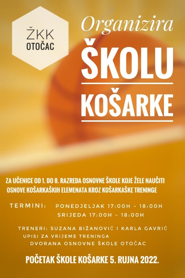 OTOČAC – ŽKK Otočac poziva sve zainteresirane igračice košarke i one koje to žele postati da se pridruže ekipi i postanu dio tima. Škola košarke namijenjena uzrastima od 1. – 8. razreda, odnosno onima koji žele naučiti osnove košarkaških elemenata kroz košarkaške treninge. Zainteresirani se mogu javiti i doći u vrijeme treninga i to svakog ponedjeljka od 17:00-18:00, te srijedom od 17:00-18:00 sati u dvorani Srednje škole Otočac.