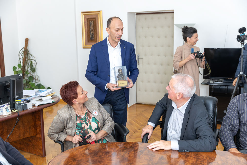 Župan se zahvalio na dosadašnjoj iznimno dobroj suradnji s Crvenim križem, posebno naglasivši zahvalnost na humanosti dobrovoljnih davatelja krvi, kojih je na području županije više od 500, istaknuvši značaj današnje obljetnice, kada je prije 70 godina odnosno 25. listopada 1953. godine u Sisku organizirano prvo dobrovoljno davanje krvi.